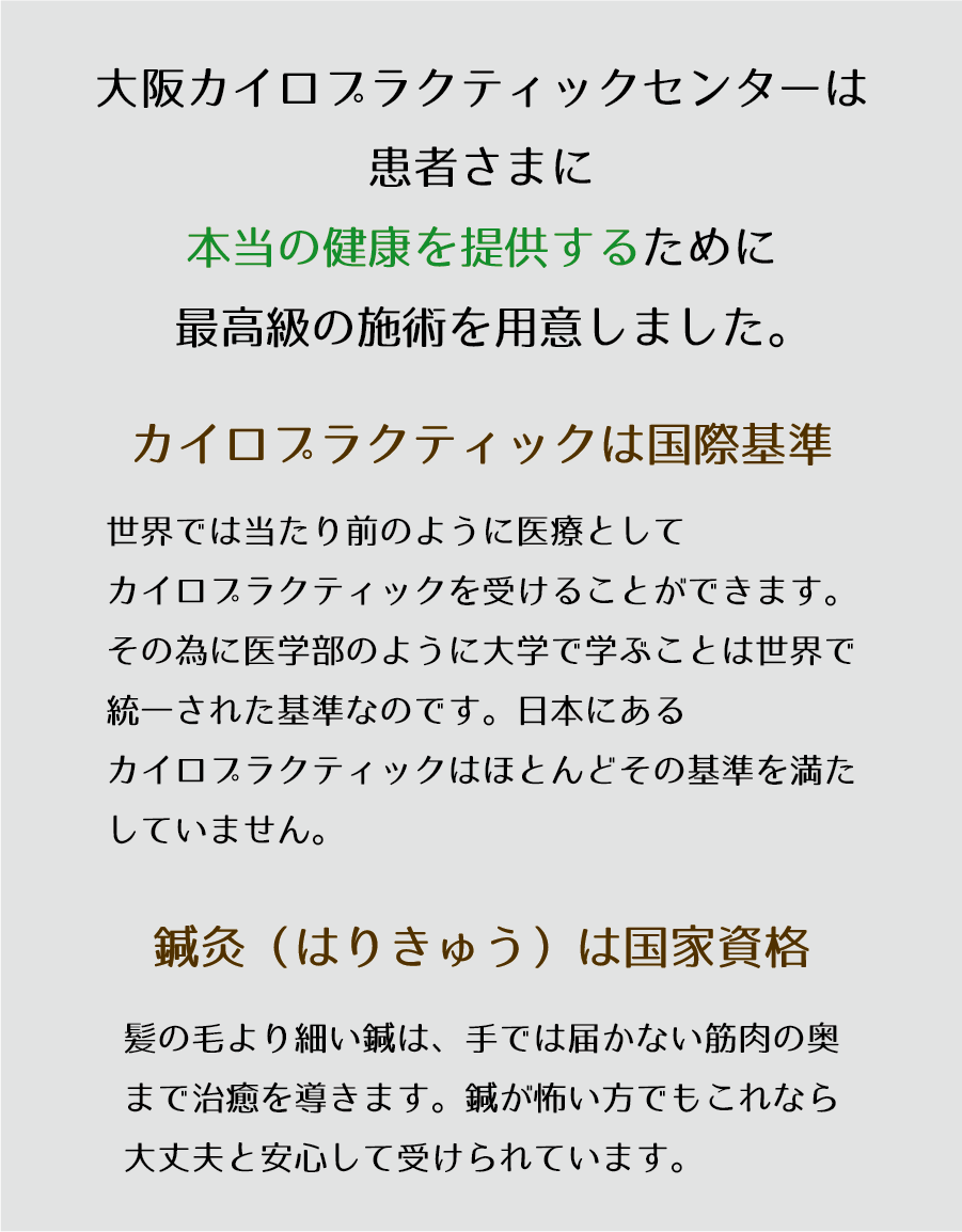 大阪カイロプラクティックセンターは15年以上、